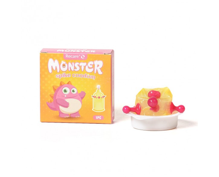 Насадка на член Recare Pink Monster Spike Condom (презерватив з кульками та вусиками)