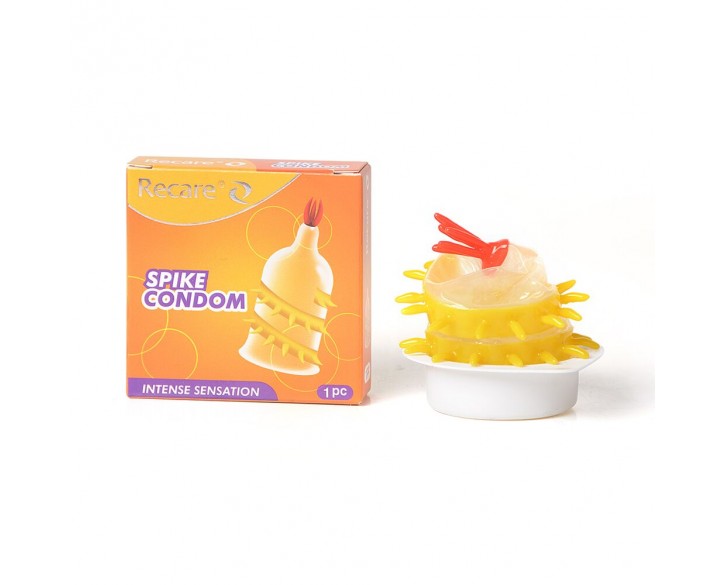 Насадка на член Recare Spike Condom Yellow (презерватив з вусиками та спіраллю шипів)