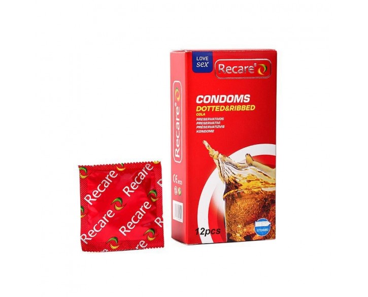 Презервативи Recare Cola Dotted&Ribbed Condoms 12 шт, з пухирцями та ребрами, аромат: Кола