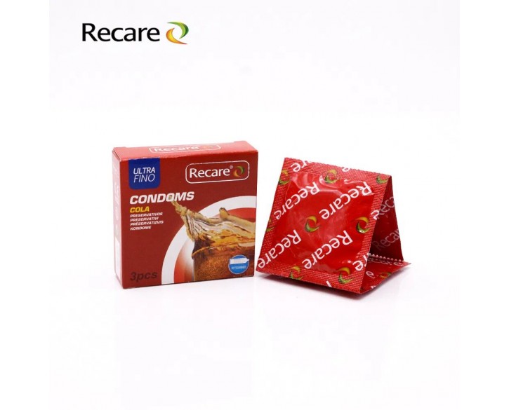 Презервативи Recare Cola Dotted&Ribbed Condoms 3 шт, з пухирцями та ребрами, аромат: Кола