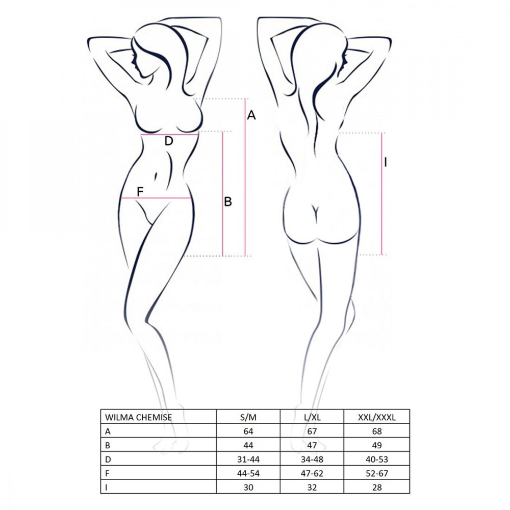 Грайливий еротичний пеньюар Passion Erotic Line WILMA CHEMISE сексуальної пантери, наповнить кожну ніч пристрастю, а кожен дотик - солодким жаром і жаданням. Атласні вставки, відвертий ліф, ажурний поділ і невелика довжина, фокусують чоловічу хтивість на найбажаніших точках.